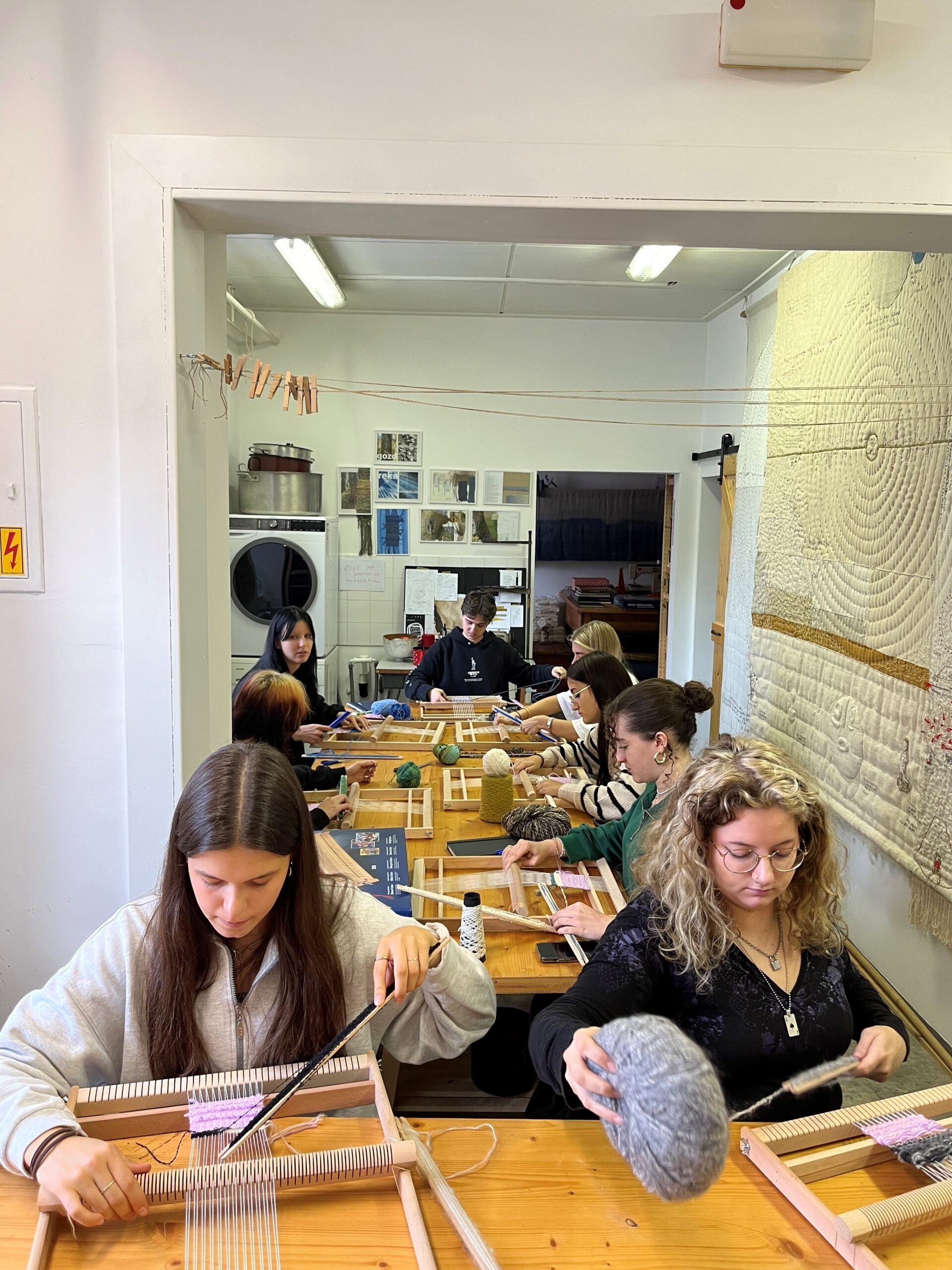 V mesecu oktobru in novembru smo v okviru modula Tkanje z mentorico Silvo Horvat izvedli 6 srečanj, na katerih so se študentje prvega letnika tekstilnega oblikovanja Fakultete za dizajn spoznavli s tehniko tkanja.