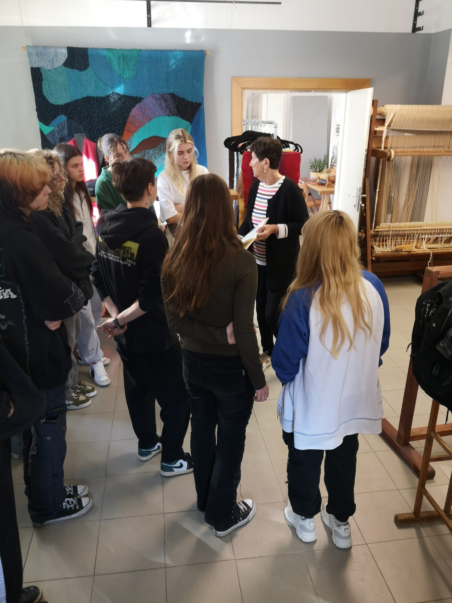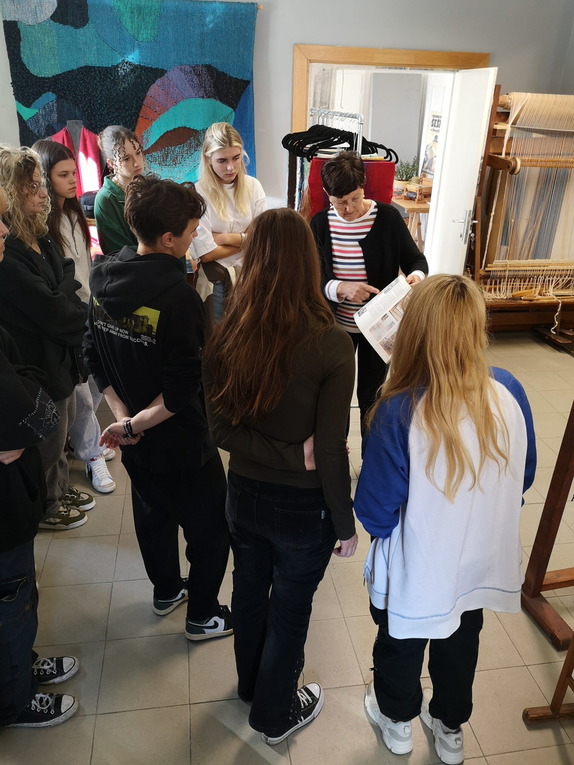Preko spoznavanja zgodovine tkanja in predstavitev dela tekstilne oblikovalke Silve Horvat so študentje odkrivali osnovne značilnosti in zakonitosti tkanja.