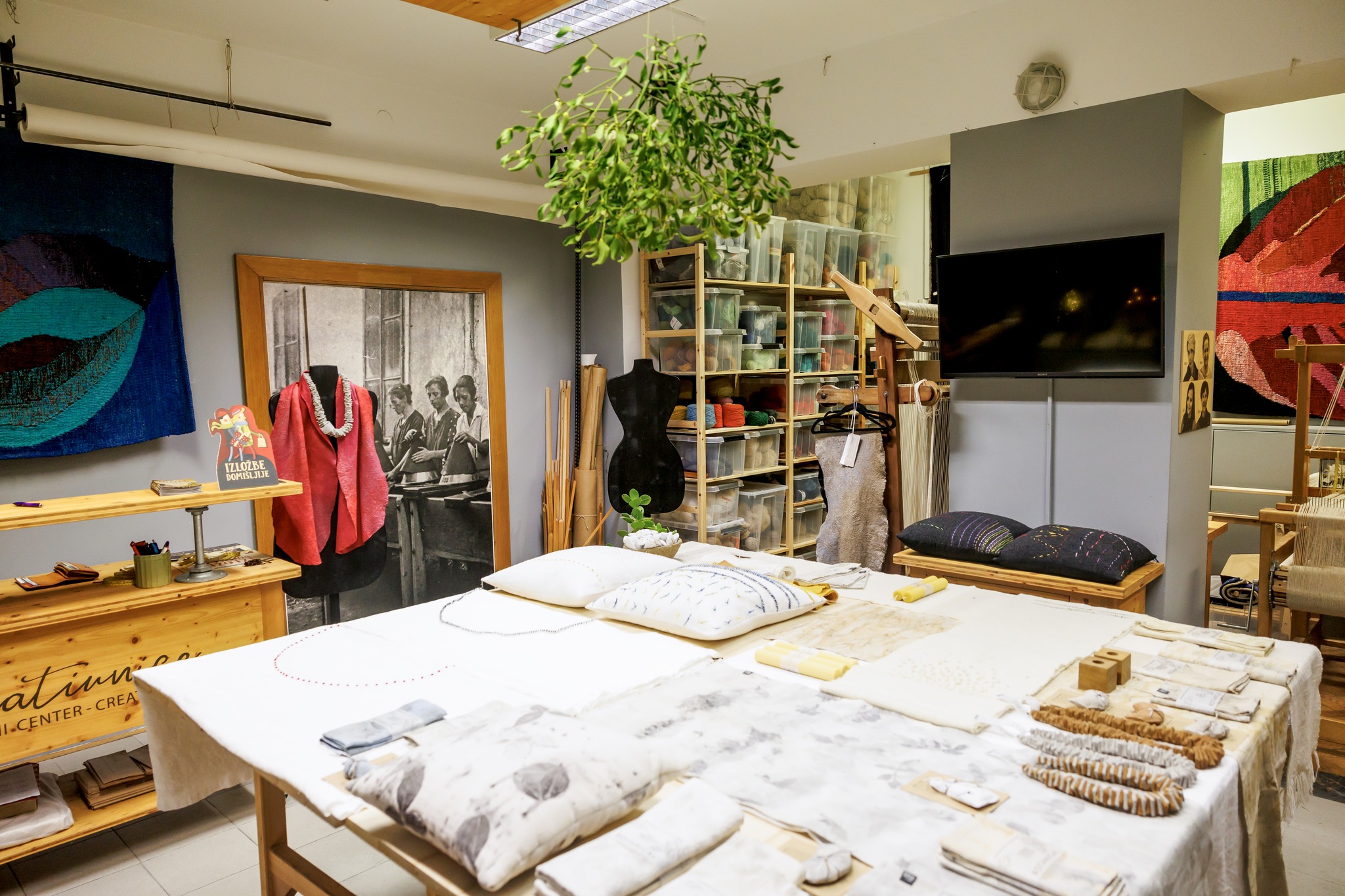 Textile designers, who otherwise work independently in the field of design, collaborate within the Kreativnice Contemporary Textile Center as a collective through joint presentations, exhibitions, various projects, and events. In recent years, they have created a series of large-scale textile works: Forest (2021), River (2021), Earth, Seed (2022), Universe of Suns (2023), Forest Floor (2025), and Underground and Air (2025), which address issues of sustainability and community reconnection. The works are designed for public spaces, so they transform with each installation. With large-scale collaborative textile works, the Škofja Loka textile designers address the increasingly relevant and pressing issues of sustainability, the living environment, and the relationships with which we build our lives. They highlight the importance of coexistence, solidarity, and active, positive action in the world.