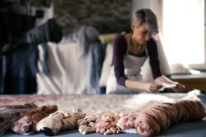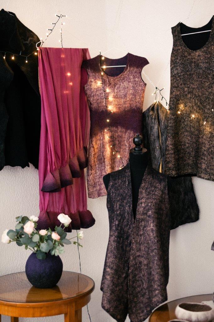 Everything is made by hand in more-than-a-thousand years old wet felting technique. It is characterized by modern, minimalist design and the use of natural materials – in addition to wool, silk, linen, cotton…