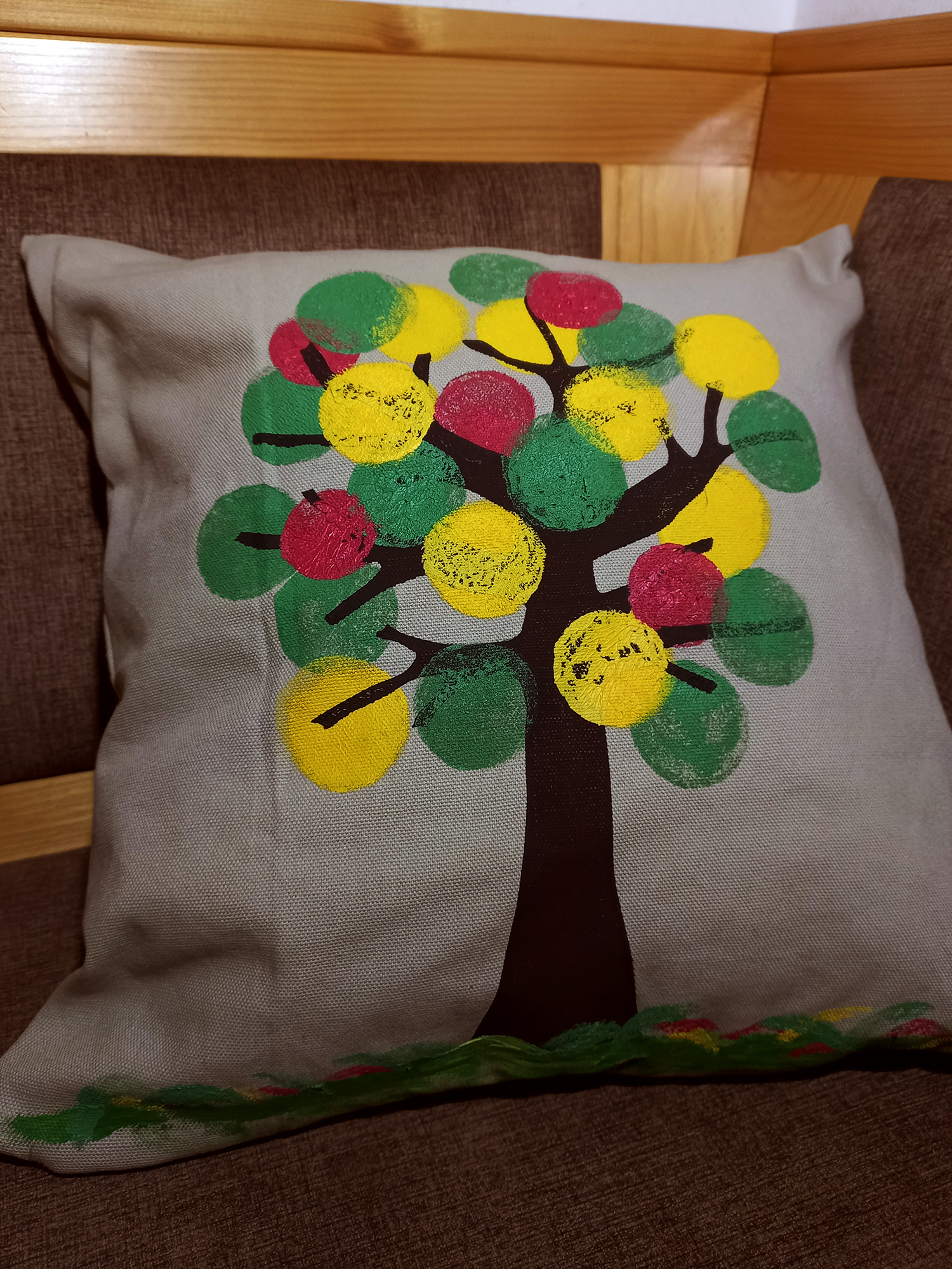 Na delavnici prejmete vse potrebno za izris vzorcev, pripravljeno bombažno prevleko za blazino, vse pripomočke za tisk in notranjo blazino, ki jo vstavimo v prevleko. Po končanem tisku s toplotnim utrjevanjem poskrbimo za obstojnost na pranje.