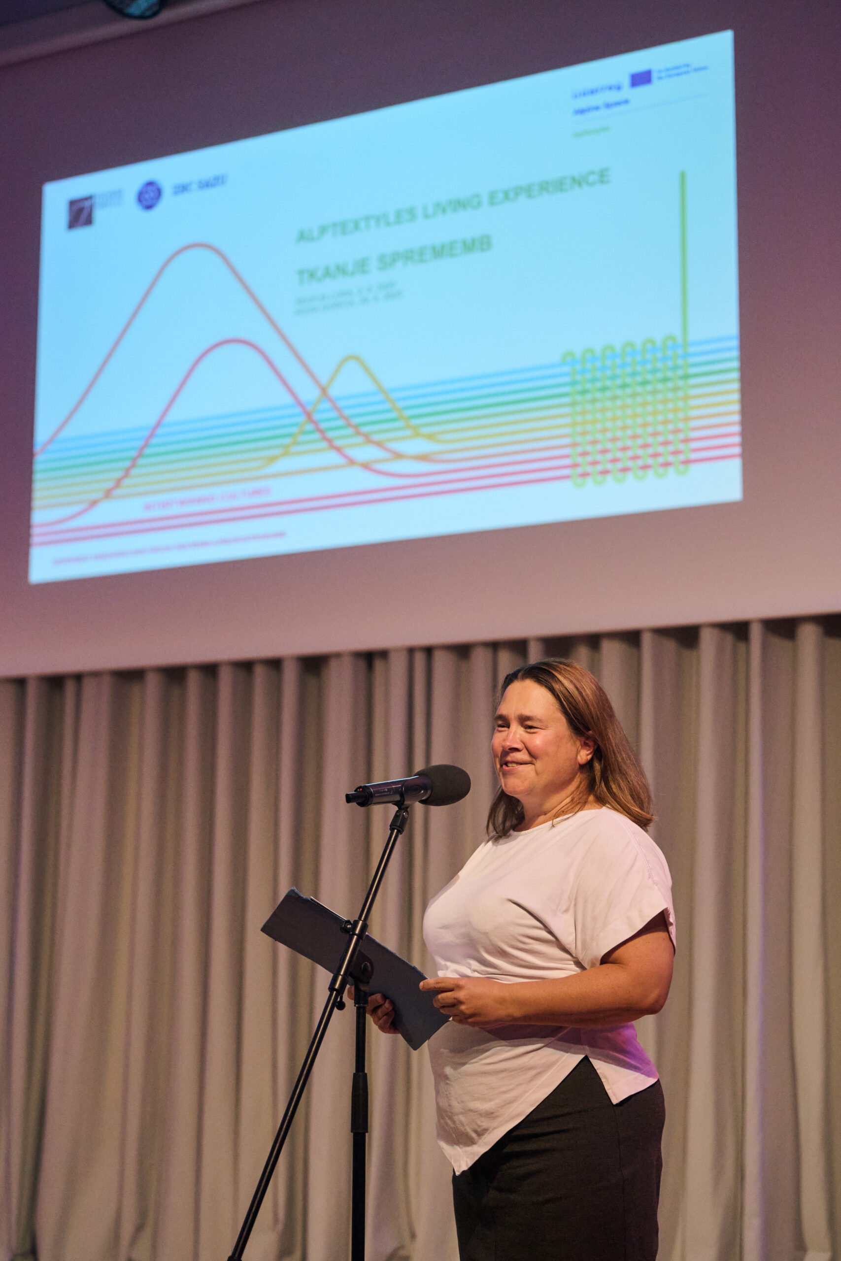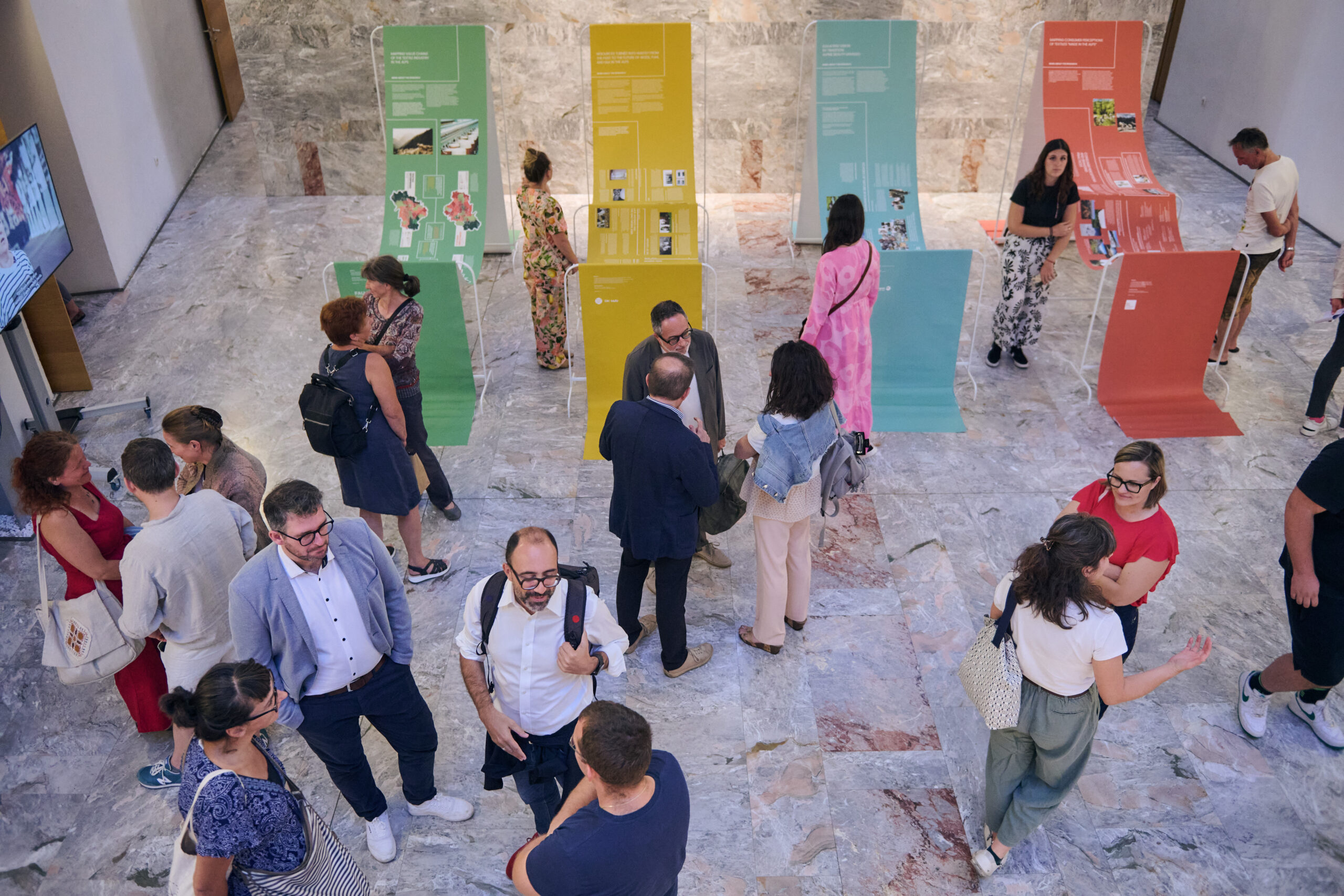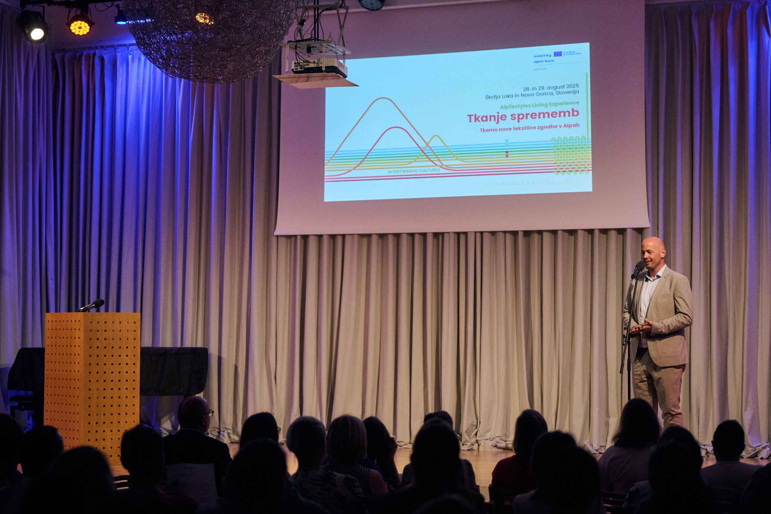 Prvi dan, 28. avgusta je v Sokolskem domu, v Škofji Loki potekalo odprtje razstave Tekstilne zgodbe Alp s serijo govorov na temo trajnosti in pomena prepletanja inovacij in tradicije v tekstilni industriji. Razstava Tekstilne zgodbe Alp nas popelje na potovanje skozi alpske pokrajine, kjer tekstil ni zgolj izdelek, temveč del načina življenja, ki povezuje skupnosti in spodbuja spremembe.