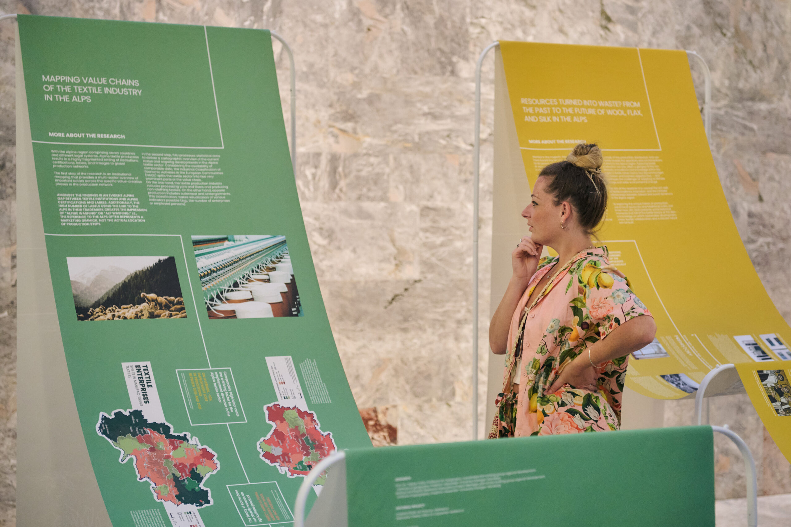 Razstava je del projekta AlpTextyles, ki bogato tekstilno dediščino alpske regije postavlja v središče iskanja novih odgovorov na sodobne izzive. V pokrajini – tako družbeni kot gospodarski – kjer so v preteklosti prevladovali naravni materiali kot so volna, lan in svila, projekt spodbuja oživljanje lokalnih, krožnih tekstilnih verig, utemeljenih na naravnih in kulturnih virih Alp. Ker vse več potrošnikov išče trajnostne in okolju prijazne izdelke, AlpTextyles ponuja model, ki spodbuja lokalno, vključujoče in odgovorno proizvodnjo.