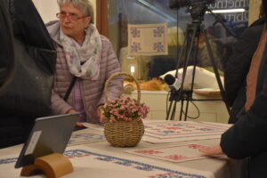 Rozalija Strojan se z vezenjem ukvarja že skoraj vse življenje. Od prvih vbodov, ki se jih je učila od svoje mame, preko vezenja v osnovni šoli, do kasnejšega poglabljanja in raziskovanja bogatega sveta vezenja. Tako je postala velika ljubiteljica in poznavalka te tehnike. Rozalija Strojan je svojo poklicno pot posvetila pedagoškemu poklicu. Sicer učiteljica matematike je pedagoški pristop vseskozi vpletala tudi na področje vezenja in v šoli redno vodila krožek vezenja. Tečaje vezenja še vedno izvaja in je glavna soavtorica priročnika o vezenju po štetih nitih s križnimi vbodi, ki ga pripravljamo in bo izšel v času razstave.