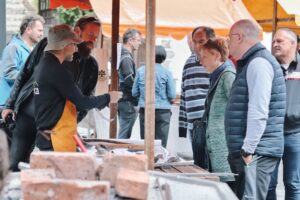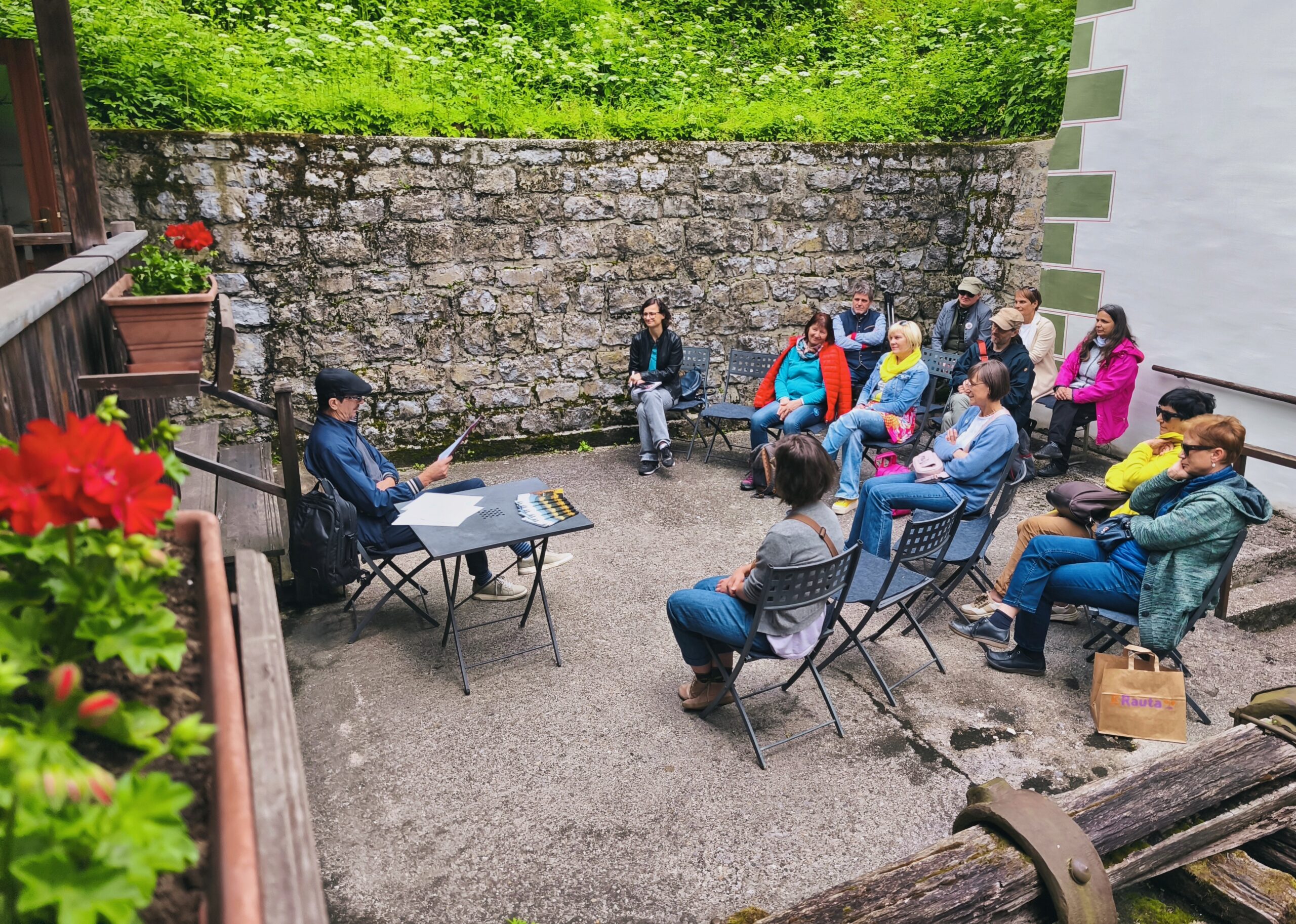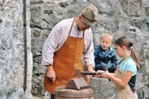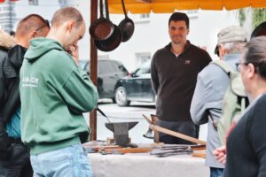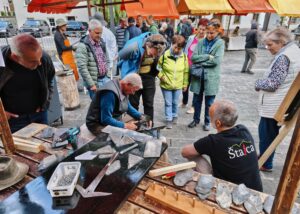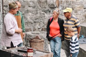 Vodenje se zaključi na trgu pred plavžem, kjer se odvija dogajanje Rokodelsko v Železnikih.