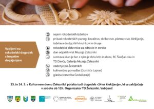 Rokodelski center Škofja Loka v sodelovanju s soorganizatorji s Selške doline v Železnikih prireja rokodelski dogodek – Rokodelsko v Železnikih. Dogodek daje prostor širjenju in deljenju znanja rokodelstva, izmenjavi in druženju ter srečevanju s tistimi, ki jih rokodelstvo zanima. Tekom celega dne bo potekal osrednji rokodelski sejem s prikazom rokodelskih panog in prodajo rokodelskih izdelkov. Organizirane bodo rokodelske delavnice, vodenje po Železnikih ter pripovedovanje v soriškem govoru.
