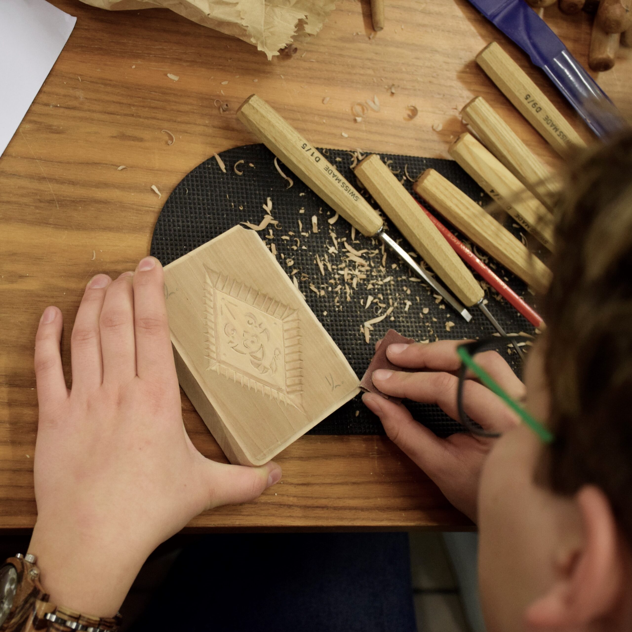 Na rokodelski tečaj lahko prinesete svoja rezbarska dleta, če jih nimate, jih dobite na tečaju.