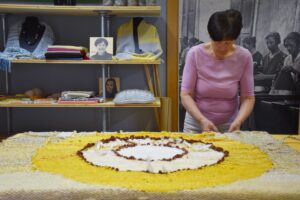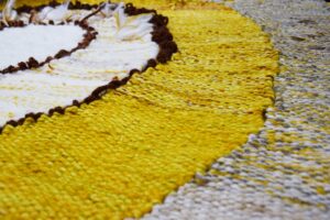 The Grand textile installation “Soil, Seed” deals with the question of our relationship to the soil and the seeds. It reveals the meanings and symbolism of seeds, emphases the importance of the preservation of ecosystems, biodiversity… Just self-sufficiency movements and community practices that show an alternative to otherwise seemingly possible endless growth are awakening the authors answer these questions. In their own way through joint work, solution-seeking and creativity.
